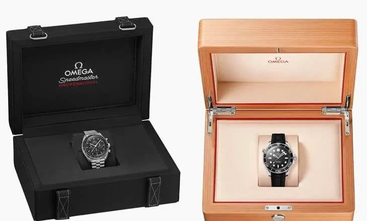 From red leather boxes to wooden collector cases and even racing tyre-inspired packaging, Omega understands the emotional impact of presentation. For many collectors, the unboxing experience is part of the ritual.